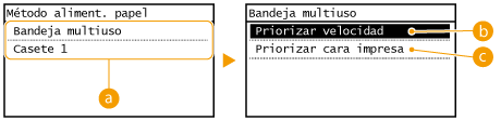 Papel), se aplicará <Priorizar velocidad> al origen del papel. En este caso, debe cargar el papel de la misma forma que cuando se selecciona <Priorizar velocidad> (