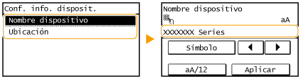 Seleccione <Nombre dispositivo> o <Ubicación>