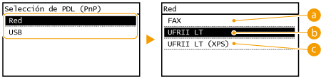 Detecta y conecta el equipo como impresora UFRII LT compatible con XML Paper Specification (XPS).