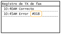 Si la impresión no se realiza correctamente o no puede enviar o recibir un fax o un documento escaneado, o si se produce otro error, dicho error aparecerá en un informe o en un mensaje en la pantalla <Monitor de estado> como un número de tres dígitos (código de error). Consulte la siguiente información para averiguar las causas y las soluciones de cada código de error. Para obtener información sobre cómo imprimir un informe de errores e información en el informe, consulte
