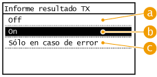Seleccione esta opción para imprimir un Informe resultado TX solo cuando se produzca un error de envío.