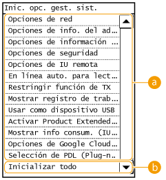 <Opciones de gestión del sistema>