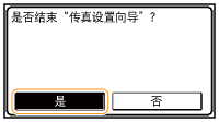 如果之前在传真设置画面中选择了 <稍后设置>( 注册传真号码和单位名称),请轻触 <传真设置>  <传真设置向导> 显示传真设置画面。
