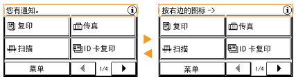 显示 <您有通知。> 或 <按右边的图标->> 时