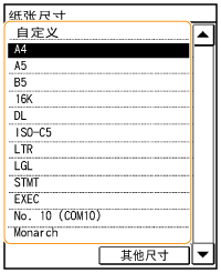 您可将本机设置为仅在选择画面中显示常用纸张尺寸。