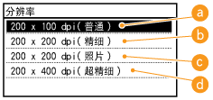 可以选择适合所用文档类型的分辨率。分辨率越高,图像越清晰,但所需的发送时间也越长。