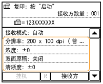 <是>。如果在步骤 2 中指定了群组拨号,“XX 接收方”将会显示。轻触 <接收方数量> 显示已在群组中注册的接收方。