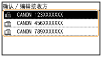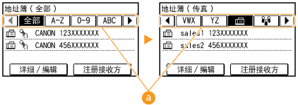 使用地址簿,可以通过从注册的接收方列表中选择来指定接收方,或可以通过含接收人姓名的接收方名称进行搜索来指定接收方。