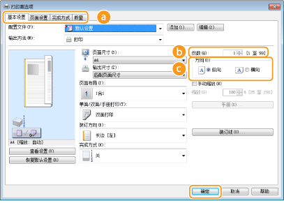 指定份数和打印方向等打印设置,然后单击 [确定]。