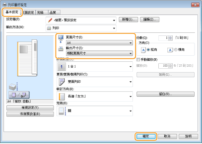 在 [输出尺寸] 中选择纸张尺寸