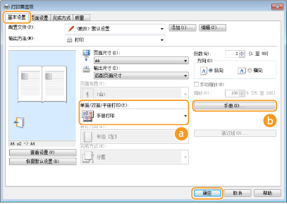 在 [单面/双面/手册打印] 中选择 [手册打印]