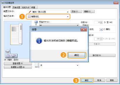 在 [输出方法] 中选择 [编辑预览]。
