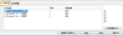 单击 [文档列表] 选项卡显示在步骤 1 至 4 中添加的文档。可以通过在列表中选择文档并单击 [从列表删除] 来移除文档。