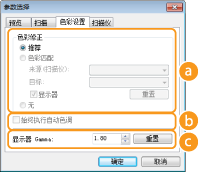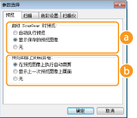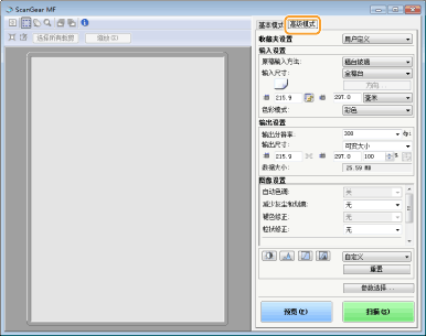 配置使用应用程序扫描文档时应用的设置,以及 ScanGear MF 操作的设置。