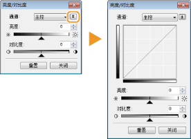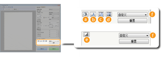 色调曲线是表示调整前和调整后图像亮度和对比度级别的曲线。选择已注册的色调曲线,来调整图像的亮度和对比度。