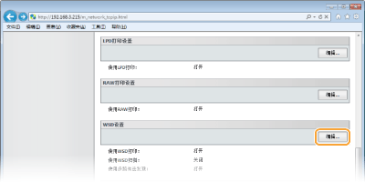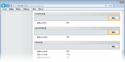 单击 [LPD打印设置] 或 [RAW打印设置] 中的 [编辑...]。