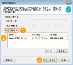 单击 [自动检测],当检测到本机时选择本机,然后单击 [下一步]。