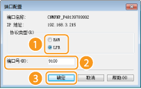 在 [协议类型] 中单击 [LPR] 或 [RAW] 单选按钮,根据需要更改 [端口号] 文本框中的号码,然后单击 [确定]。