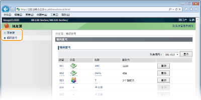 也可将接收方注册到单键中。在此情况下,请单击 [单触键],而不是 [编码拨号]。