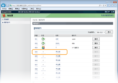单击名称为“未注册”项目的 [数量]、[类型] 或 [名称] 下面的文字链接。