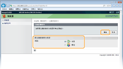 选择 [要注册的接收方类型],然后单击 [确定]。