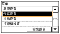 列出所有关于传真的设置,并有简短说明。默认设置用十字符(
