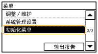 选择此选项使下列设置恢复到出厂默认设置。可一次性恢复下列所有设置,也可分别恢复各设置。 初始化菜单