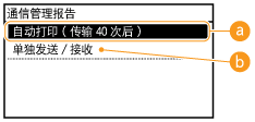 通过打印通信管理报告查看已发送和已接收文档的传真日志。每隔 40 次传送可自动打印报告,或者可手动打印。