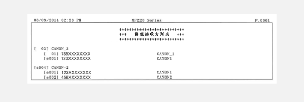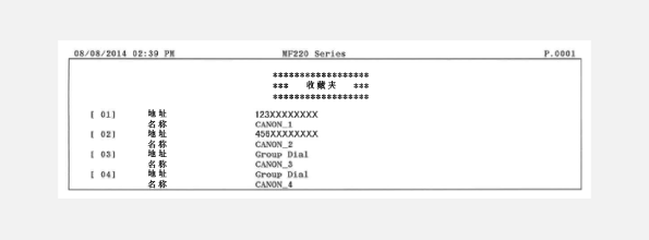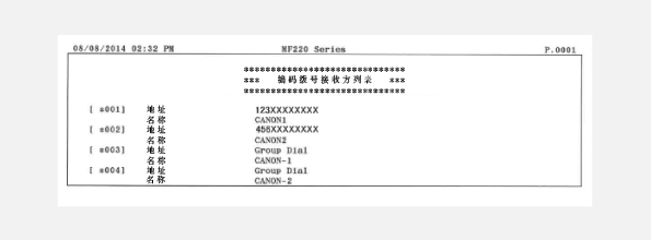 通过打印地址簿列表可查看在地址簿中注册为 <编码拨号>、<单触键> 和 <群组拨号> 的接收方列表。