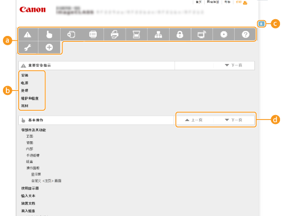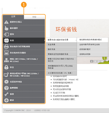 电子手册分为不同的各个画面,每个画面的内容各不相同。