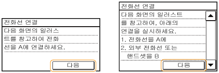 전화선이 연결된 후에 <다음>을 누릅니다.
