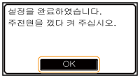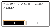 이전에 팩스 설정 화면( 팩스 번호 및 사용자명 등록)에서 <나중에 설정함>을 선택한 경우 <팩스 설정>  <팩스 설정 가이드>를 눌러 팩스 설정 화면을 표시합니다.