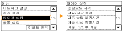 기기가 지정된 시간 동안 유휴 상태인 경우 자동으로 표시되는 화면을 변경하려면: