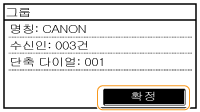 원하는 모든 수신인을 등록할 때까지 8단계와 9단계를 반복한 다음 <확정>을 누릅니다.