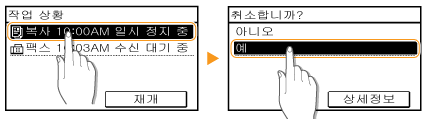 를 누른 직후 복사를 취소하려면 화면에서 <취소>를 선택하거나 조작 패널에서