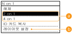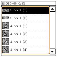 <2 on 1>/<4 on 1>을 사용하면 복사 배율이 자동으로 줄어듭니다(화면에 복사 배율이 표시됨).