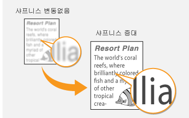 전송하기 전에 이미지의 선명도를 조절할 수 있습니다. 선명도를 높이면 흐릿한 텍스트와 선이 선명해지고 선명도를 낮추면 잡지 사진의 모습이 개선됩니다.