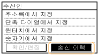 <이력에서의 재송신을 제한>이 <설정>으로 설정된 경우 이 기능을 사용할 수 없습니다. 이전에 사용한 수신인의 사용 비활성화