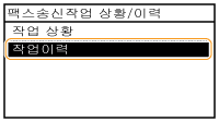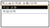 ![]() <팩스 송신 작업 상황>/<팩스 수신 작업 상황>송신 및 수신 중이거나 처리 대기 중인 문서 목록을 표시합니다.