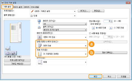 일부 용지 크기와 유형에서는 양면 인쇄를 사용하지 못할 수도 있습니다. 용지