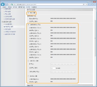 수동으로 입력하는 주소입니다. 이 주소를 사용할 경우 프리픽스 길이와 기본 라우터 주소를 지정합니다.