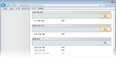 LPD를 통해 인쇄하려면 확인란을 선택합니다. LPD 인쇄를 사용하지 않을 경우 확인란 선택을 해제합니다. [RAW 인쇄 사용]