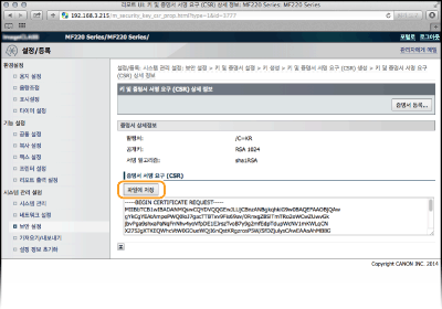 네트워크 통신 키 생성 키 및 인증서 서명 요구(CSR) 생성