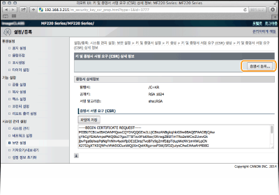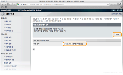 [파일 선택]을 클릭하고 인증서 서명 요구에 대한 파일을 지정한 후 [등록]을 클릭합니다.