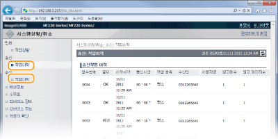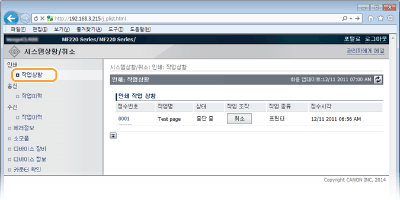 시스템 관리자 모드로 로그온한 경우 현재 인쇄 중이거나 인쇄 대기 중인 모든 인쇄 문서가 나열됩니다.