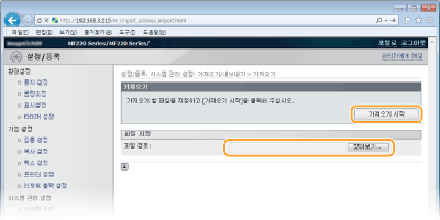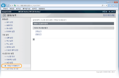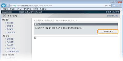내보내기/가져오기 과정 진행 중에 기기를 조작하지 마십시오.내보내기/가져오기 전에 문서 인쇄 등의 작업이 현재 진행 중인지 확인하십시오.