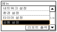 카세트 조작 및 용지 공급 방법에 대한 모든 설정이 간단한 설명과 함께 나열됩니다. 기본 설정에는 칼표(  )가 표시됩니다.