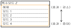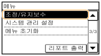 조정 및 유지 보수에 대한 모든 설정이 간단한 설명과 함께 나열됩니다. 기본 설정에는 칼표(