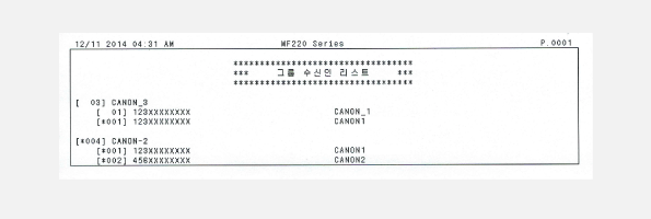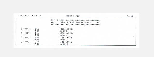 주소록을 인쇄하여 <단축 다이얼>, <원터치> 및 <그룹 다이얼> 등 주소록에 등록된 수신인 목록을 확인할 수 있습니다.