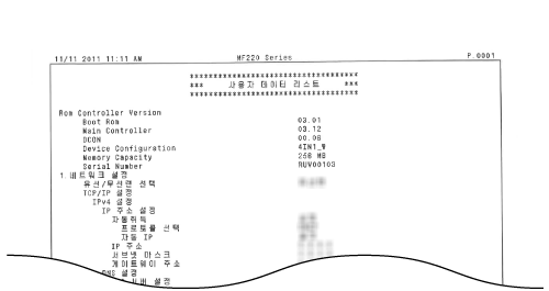 ) 및 기기에 등록된 내용을 확인할 수 있습니다. 이 목록은 기기에 등록된 용지 크기 및 유형 및 <송신결과 리포트>, <통신관리 리포트>, <수신결과 리포트>의 인쇄 설정을 포함합니다.